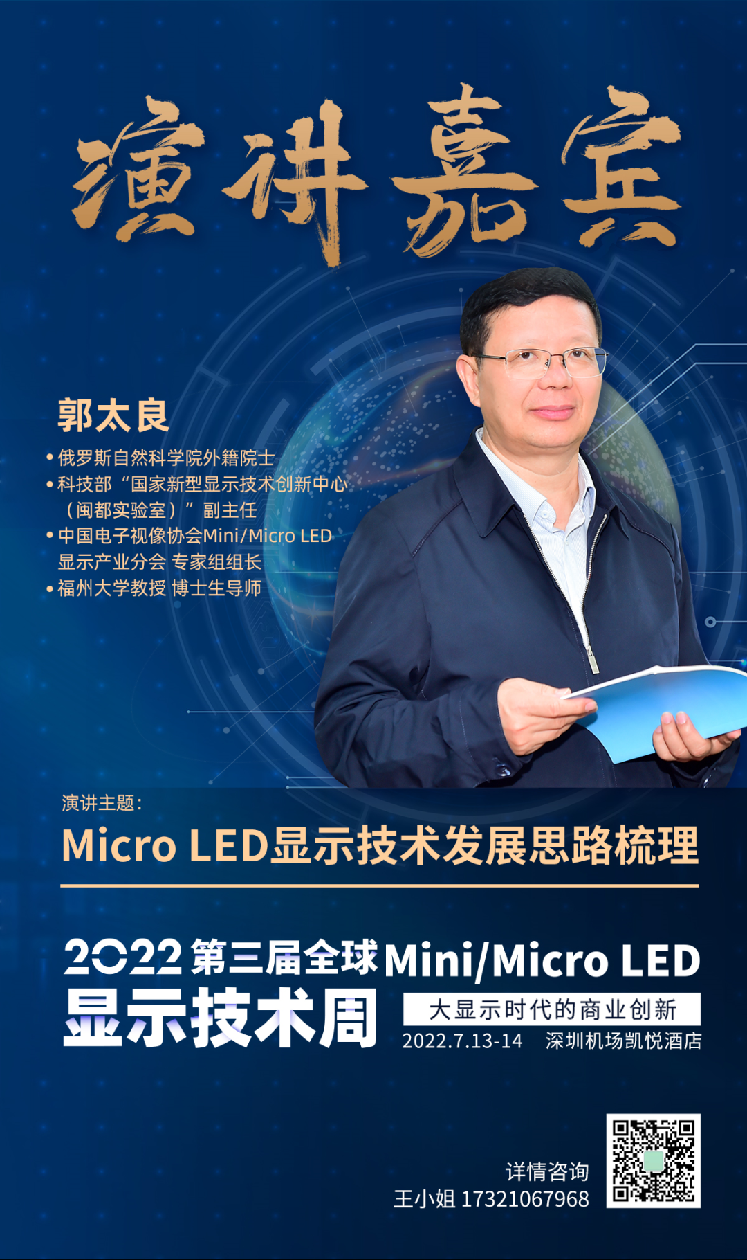 俄罗斯自然科学院外籍院士 郭太良受邀出席2022第三届全球Mini/Micro LED显示技术周,并将带来创新的观点,敬请期待。