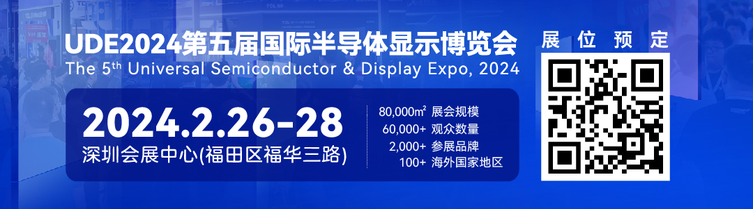 由中国电子视像行业协会指导、上海舜联会展有限公司主办的UDE2024第五届国际半导体显示博览会(简称:UDE2024)吹响半导体显示产业开年大展的号角,将于2024年2月26-28日深圳福田会展中心拉开帷幕,新年伊始,提前把握国内外商机。