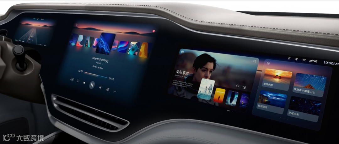 第三代荣威RX5座舱信息显示,本次搭载了27英寸全景无界滑移屏,支持左右300毫米的离移动,并且拥有4K分辨率,应用了Mini LED技术,内置高通骁龙8155芯片。
