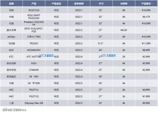 据万象智库研判:Mini LED在Monitor应用中短期主要定位电竞市场,随着成本快速下降,品牌加速新品导入,预计将快速实现Mini LED Monitor市场的快速提拉。