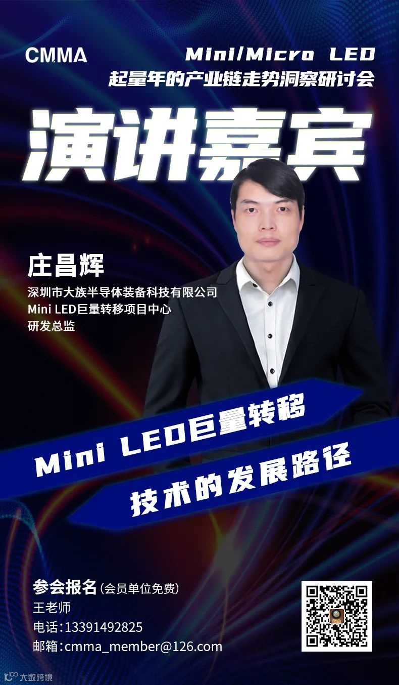 由中国电子视像行业协会Mini/Micro LED显示产业分会(CMMA)指导,舜联智库主办的“Mini/Micro LED起量年的产业链走势洞察”线上会议将于2022年3月31日14:00-16:30在线举办 ,本次线上会议特别邀请六位来自产业链上中下游的重磅嘉宾,分别从巨量转移、检测修复、封装材料、点胶工艺、封装、面板、应用为大家讲解Mini/Micro LED显示产业现阶段最新动态,一起探讨2022-2023年发展前景。