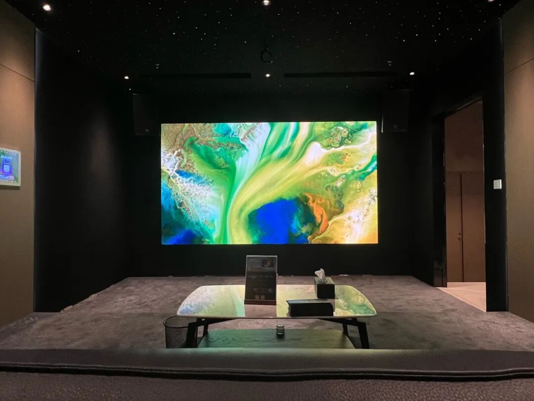 基于COB技术的Micro LED超高清巨幕,利用自有技术专利,还原色彩之美,营造的真实感、代入感与沉浸感,让用户足不出户就能置身于一个个逼真的“虚拟视界”,为用户提供超凡观影体验。其可拼接入户的属性解决了目前家用显示尺寸不能超百吋的硬伤。填补了国内目前百吋级以上家用巨幕产品的空缺,给高端消费者在家用级观影需求上提供了最佳选择。