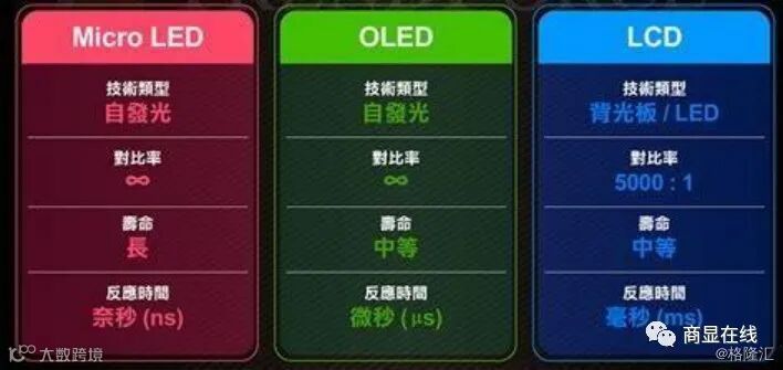 作为一种新兴的显示技术,Micro LED与OLED比较类似,但它比OLED屏幕寿命更长,同时响应速度可以达到奈秒级别,比OLED更快。不仅如此,Micro LED还具有高亮度、低耗电、超高分辨率等诸多优势,综合来看比OLED更具优势。