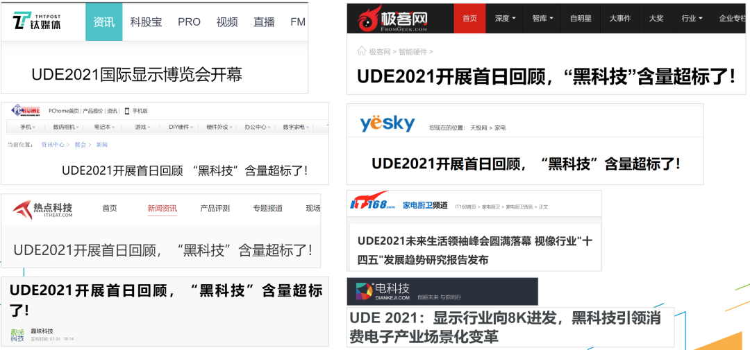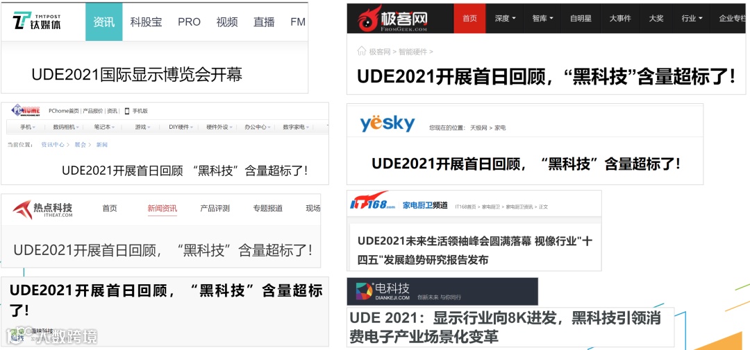 UDE国际显示博览会展前中后期共发布原创稿件百余篇,推动了显示行业健康发布,满足了行业及大众消费的双重需求。