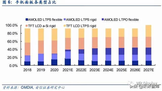 据 OMDIA 数据显示,2020 年全球显示面板市场约 1060 亿美元,其中 AMOLED 显示面板 市场规模达到 292 亿美元,占比 27.5%,而在手机领域,由于手机品牌客户仍积极采用 AMOLED 面板,AMOLED 机种渗透率有望持续提升。