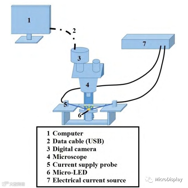 当然, 除了PL、EL 检测之外,也有专家另辟蹊径,研发新的检测技术。像是中国厦门大学与国立交通大学的研究团队合力研发了一种摄影机型显微成像系统供Micro LED 测试使用,该系统结合了电脑、电流、数位摄影机、电流供应棒与显微镜搭配支援软体,能够捕捉并分析显微镜影像,测量Micro LED 晶片的亮度。