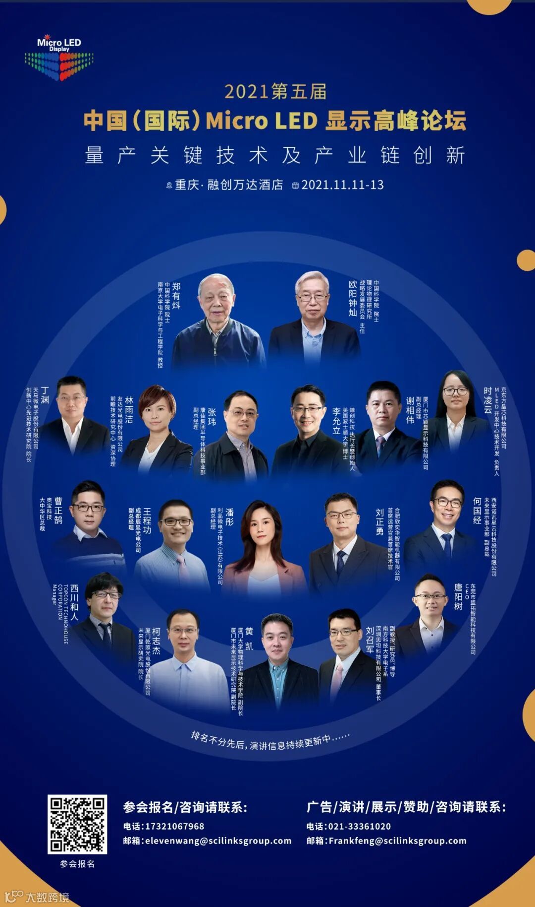 本次大会,行业院士专家将携康佳、錼创、芯颖显示、友达、京东方晶芯、天马、利晶微、辰显光电、欣奕华、奥宝、诺瓦星云、乾照光电、南方科技大学、Topcon、盟拓等企业领袖献言2021第五届中国(国际)Micro LED显示高峰论坛,旨在推动我国Micro LED产学研用协同发展,从而在国际新型显示产业竞争中形成优势。