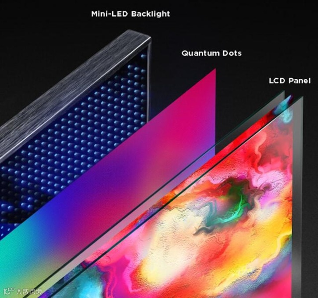 从技术角度来看,Mini LED在保留LCD优点的同时,还融入了OLED的部分特点,可以说是LCD的全面升级版。Mini LED采用直下式背光成像技术,通过微米级LED发光芯片技术,在背光层单位面积内容纳更多的LED灯珠,光源密度的大幅度提高使得显示区域亮度调节变得十分简单,能够比较精确地在个别区域内关闭LED从而显示出完全的黑色,具有节能、轻薄化、广色域、高对比度、精细动态分区等优点。