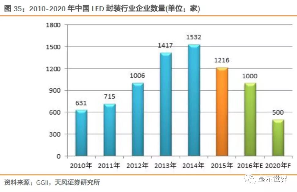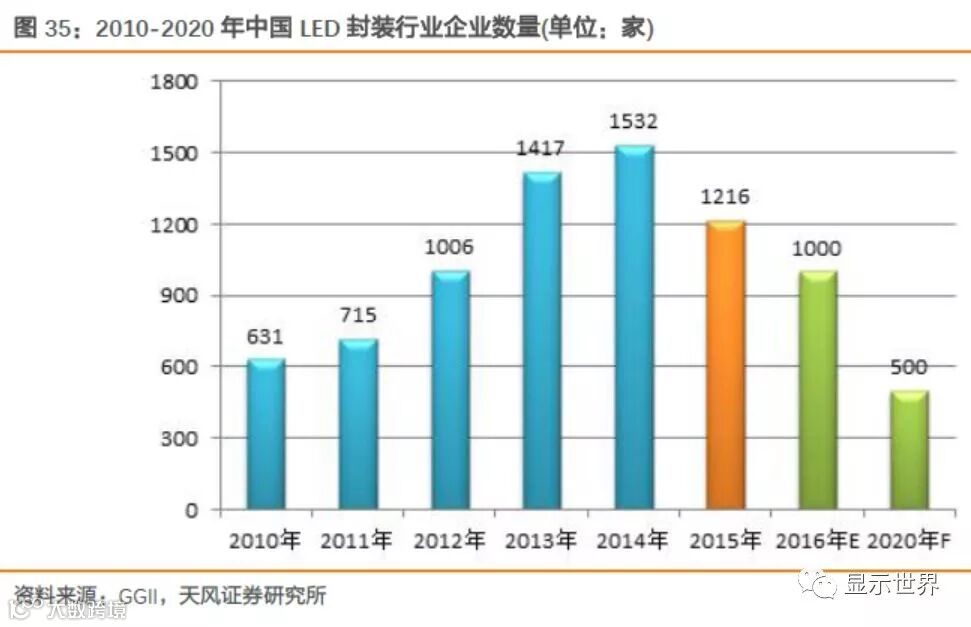 LED封装技术壁垒和投资门槛均低于LED芯片环节,我国LED封装行业企业经历过12-14年的扩张,随着行业增速的回落、竞争的加剧,我国LED封装行业进入洗盘阶段,行业竞争结构得到优化。