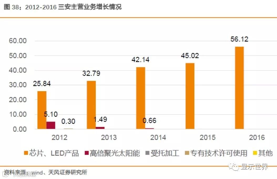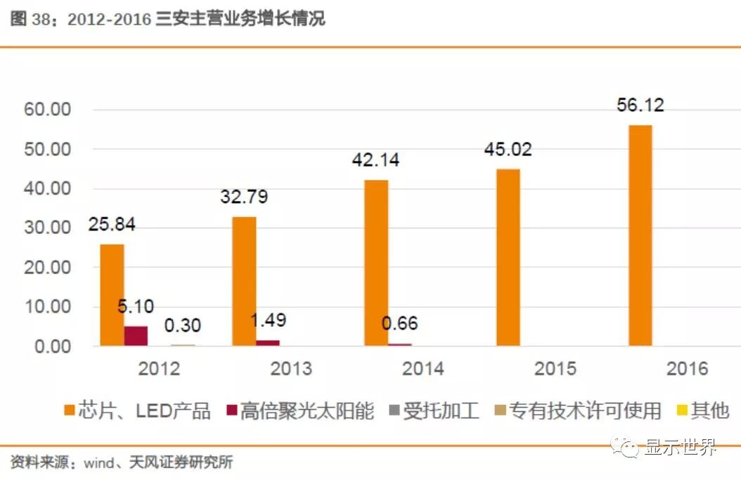 其主营业务保持高速增长,2016的营收中,芯片、LED产品占到了89.46%,在2017年的利润预测公告中,公司也表示,报告期内,LED需求旺盛,致使公司2017年度实现的归属于母公司所有者主营业务净利润比上年同期有较大幅度增长。
