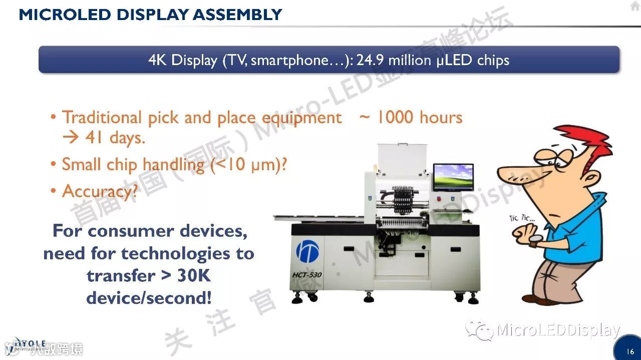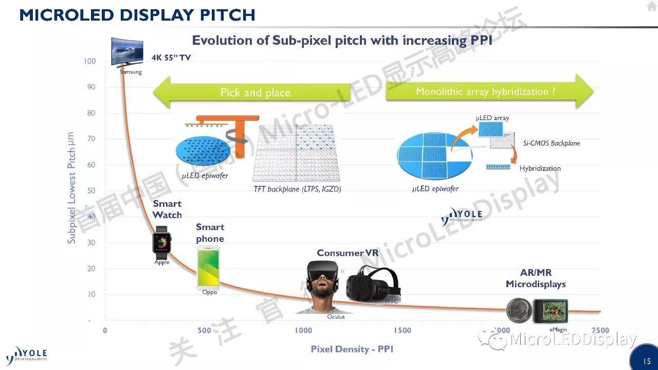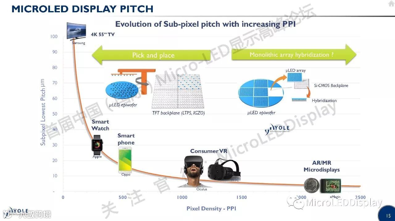本届论坛上,Yole Developpement 高级分析师 Eric Virey做了题为“Micro-LED显示的前景与挑战”的精彩分享。