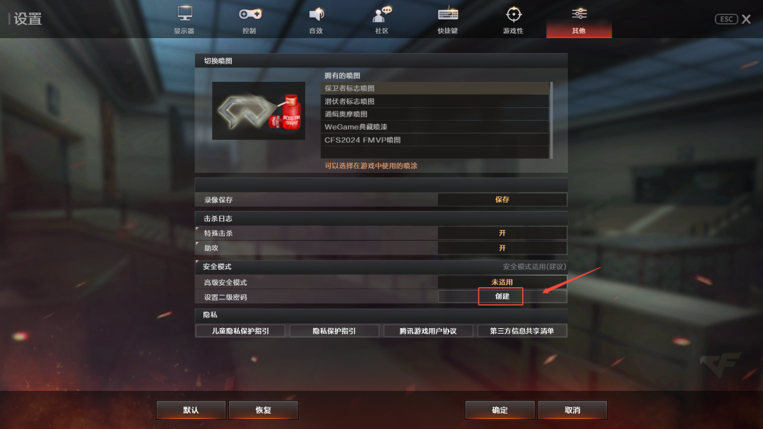 CFer们可以通过在游戏中,通过【设置】-【其他】页面手动开启高级安全模式。
