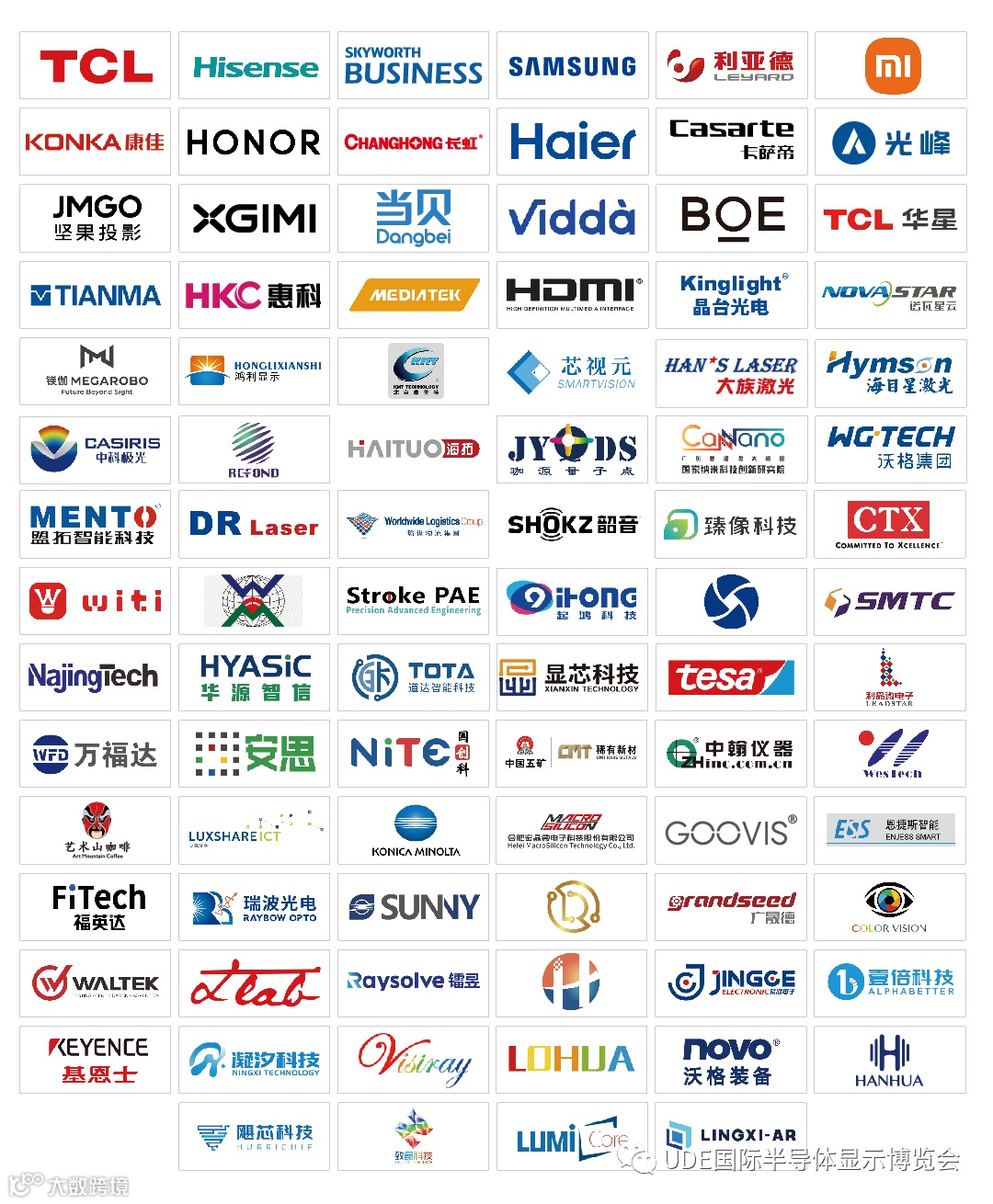 TCL、海信、三星、利亚德、海尔、创维、TCL华星、京东方、天马、小米、联发科、大族、帝尔、海目星、晶台、瑞丰、诺瓦星云、瑞波、鸿利显示、立讯精密、广纳珈源、国创科、盟拓、海拓、沃格、镭昱、镁伽、芯视元、德莎等(由于篇幅有限,不尽详列)。