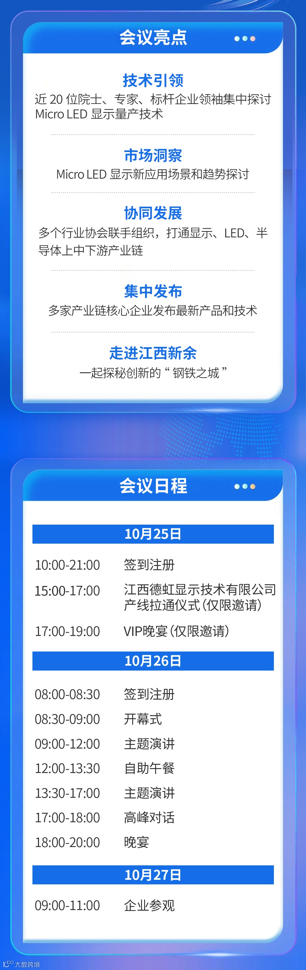 2023第六届中国(国际)Micro LED技术显示高峰论坛由南京平板显示行业协会、中国光学光电子行业协会液晶分会、中国半导体照明/LED产业与应用联盟、中国电子材料行业协会、台湾显示器产业联合总会主办,中国半导体行业协会、中国电子视像行业协会Mini/Micro LED显示产业分会协办,上海舜联投资管理有限公司承办,论坛将于2023年10月25日至27日在中国新余市召开,本次论坛以“技术先导 显示无限”为主题,通过对技术路线的回顾和展望,聚焦Micro LED量产关键技术突破和产业链建设,展示最新技术和相应产品、推动和完善产业链安全及配套对接,促进产业链进一步健康发展。