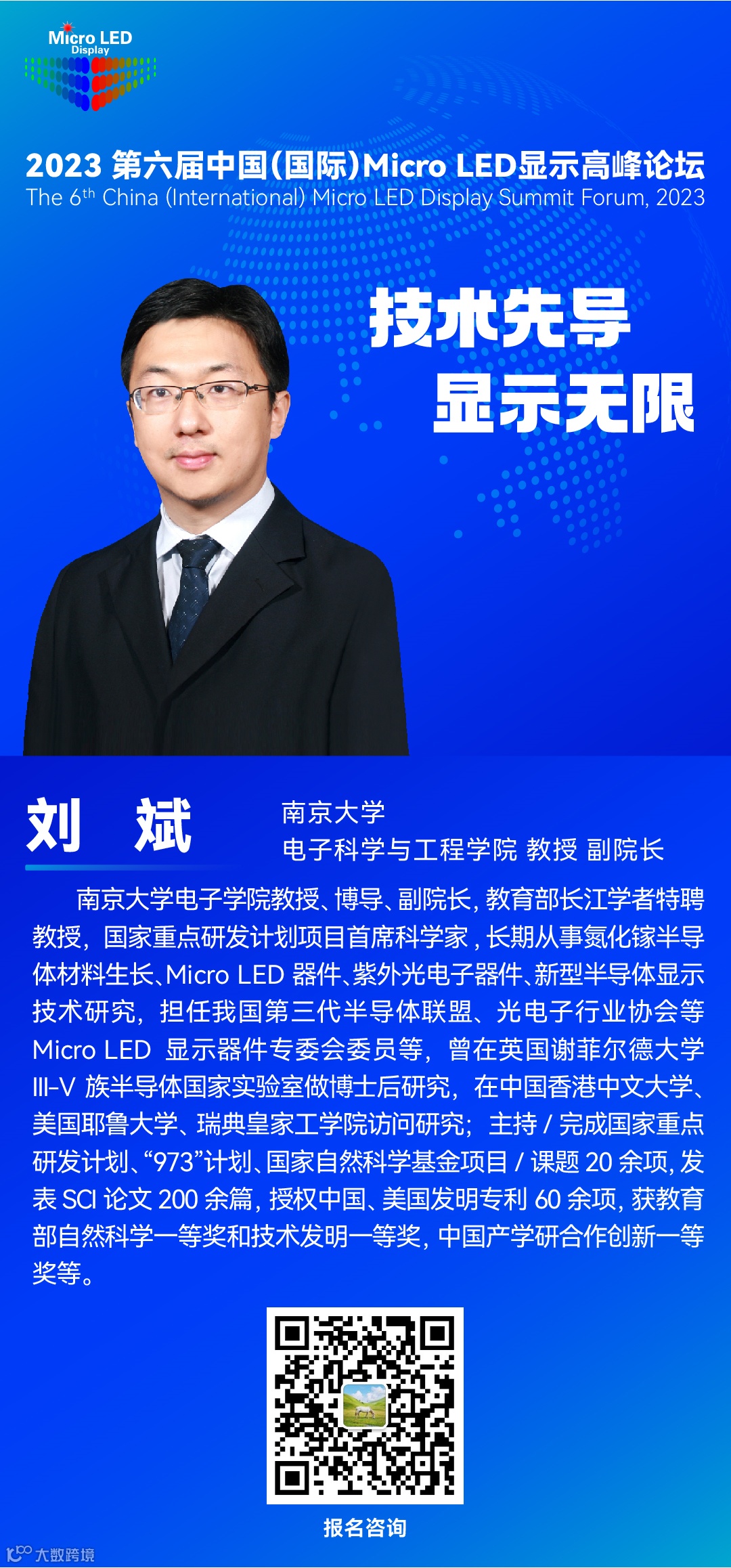 南京大学电子科学与工程学院教授、副院长刘斌确认出席2023第六届中国(国际)Micro LED显示高峰论坛并发表演讲。更多精彩演讲内容,欢迎各位莅临现场聆听。