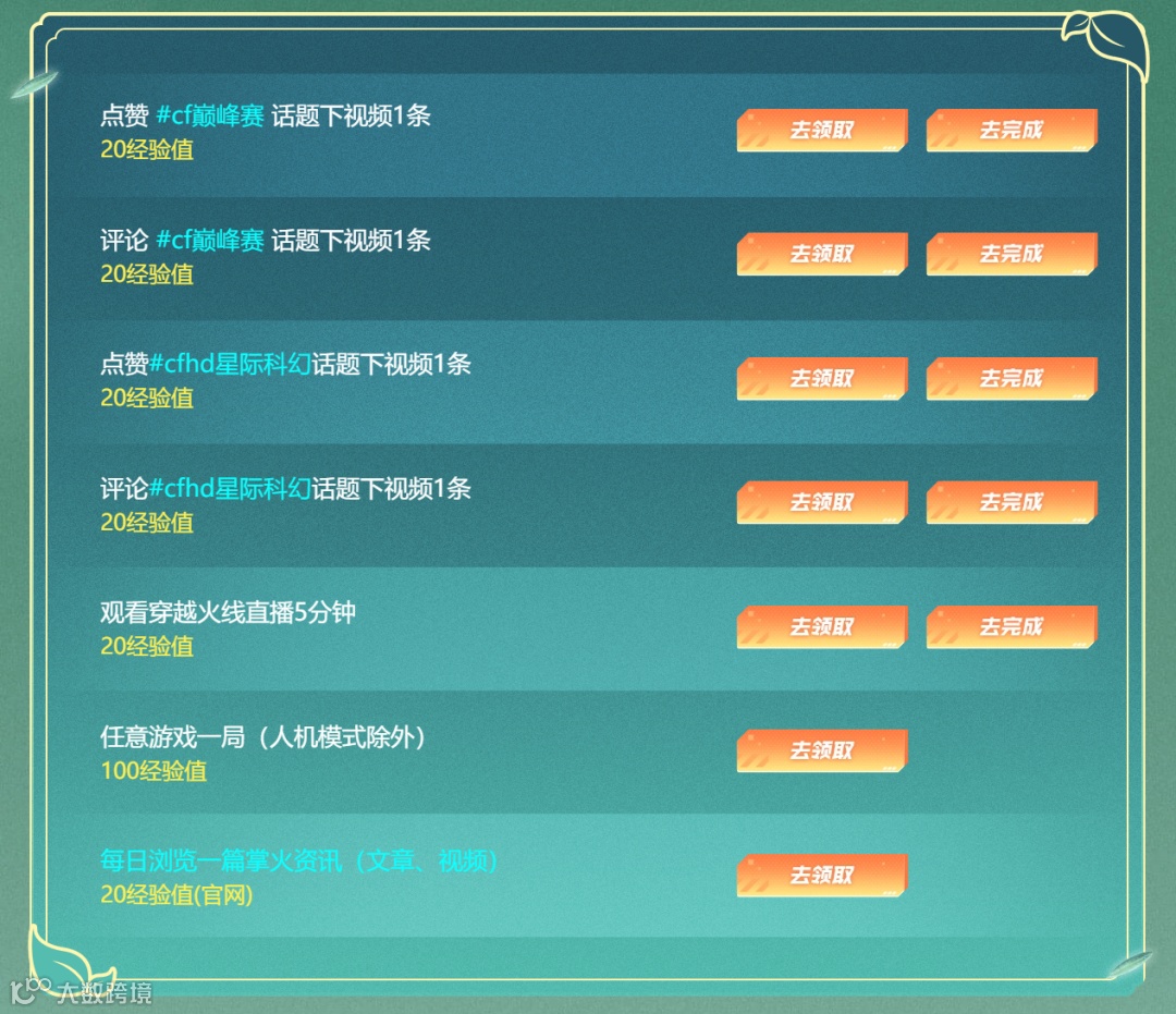 9.发布一条穿越火线视频,带话题#cf巅峰赛#(每周)