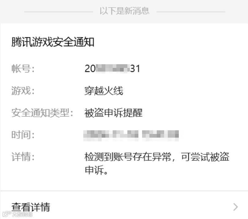 1、通过【腾讯游戏安全中心】公众号进行消息提醒(该提醒会向所有存在被盗情况且账号被封禁的CFer发送,该功能于1月21日刚上线);