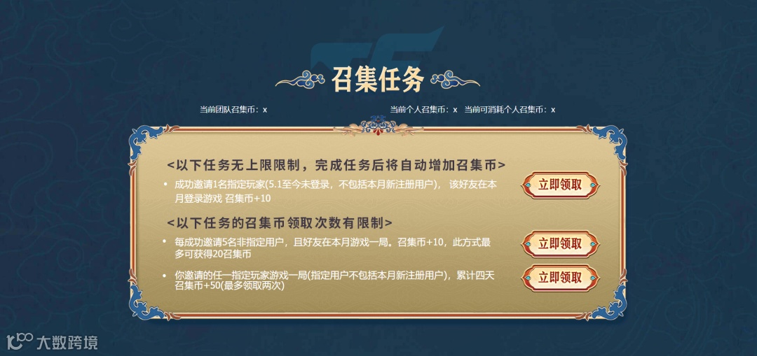 邀请5名任意好友当月游戏一局+10