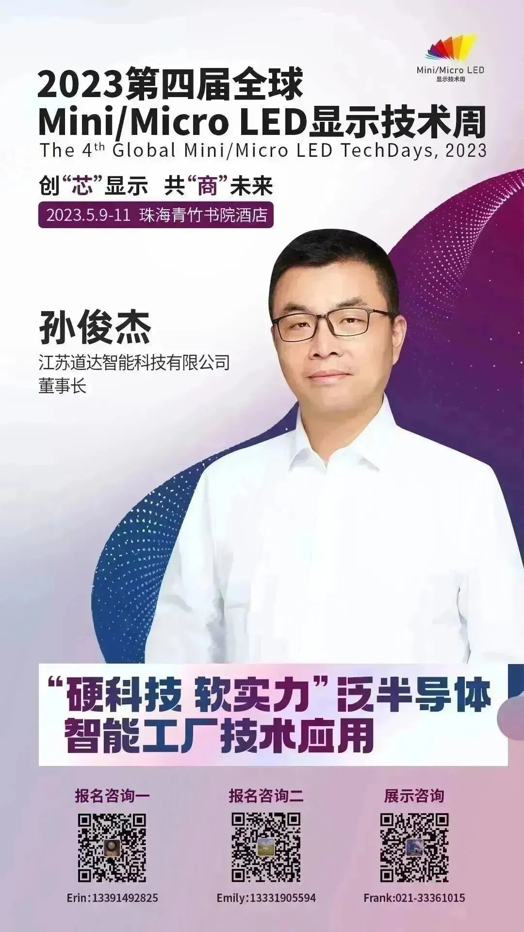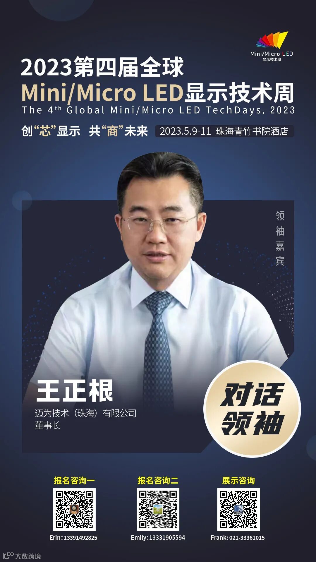 迈为技术(珠海)有限公司董事长王正根将受邀出席2023第四届全球Mini/Micro LED显示技术周,分享对Mini/Micro LED显示产业发展态势解读并将带来创新观点,敬请期待。