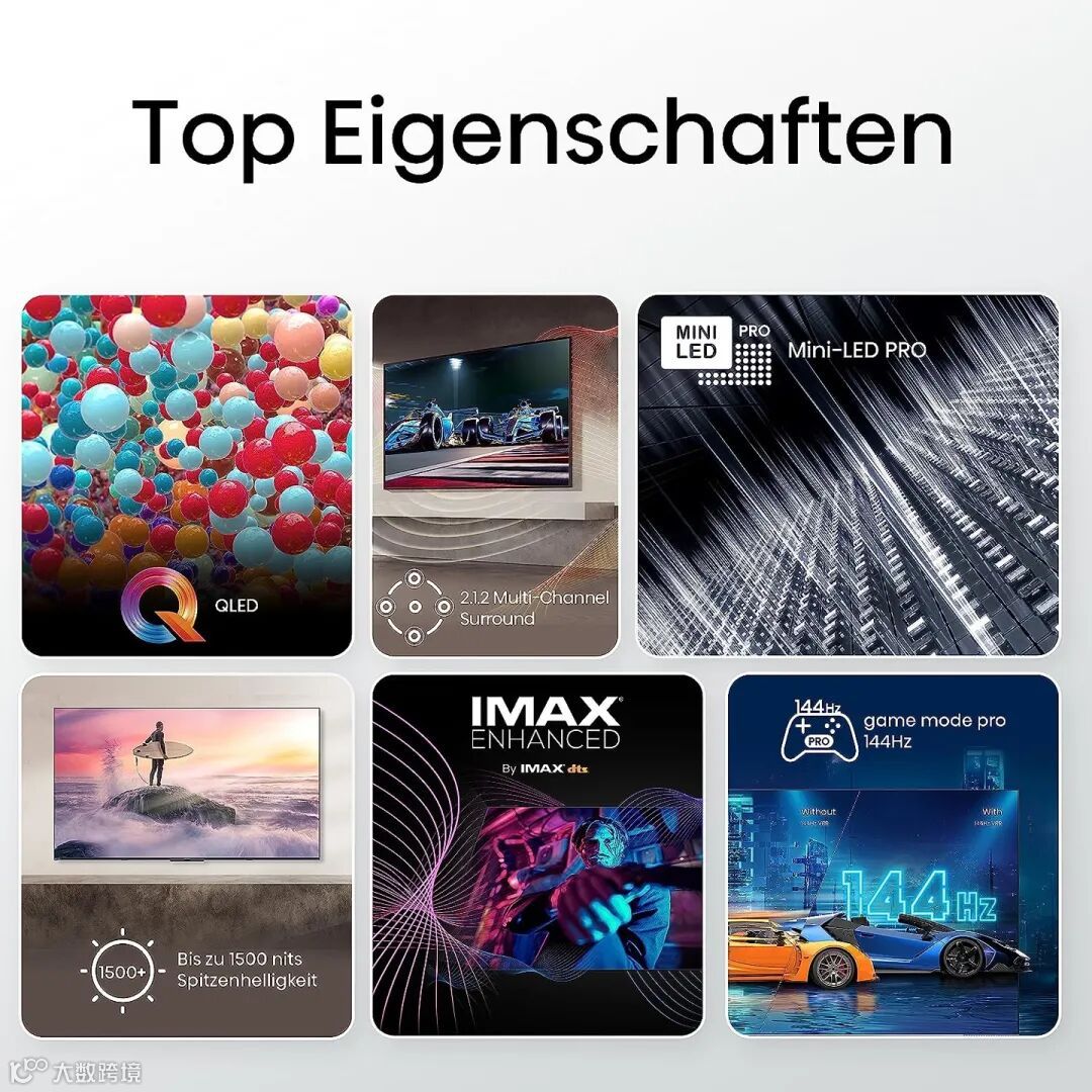 海信 U8KQ Mini LED 电视配备有三种屏幕尺寸,分辨率 3840×2160,支持 120Hz / 144Hz 刷新率,HDR10+、杜比视界,最高 1500nits 亮度;该款电视内置四核处理器,50W 扬声器,支持杜比全景声。