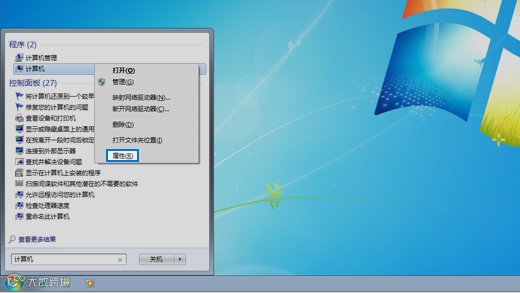 按钮,在搜索框中键入 计算机,右键单击“计算机”,然后选择“属性”。