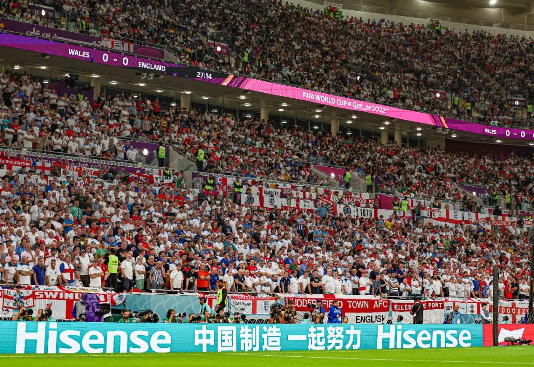 北京时间昨晚今晨,2022卡塔尔世界杯精彩继续, “ Hisense 中国制造 一起努力”围挡亮相,刷屏16强晋级赛场,见证精彩时刻,进入全球亿万球迷视野。