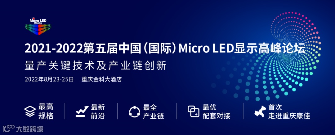 【重要会期通知】重要会期通知|2021-2022年第五届中国(国际)Micro LED显示高峰论坛8月23-25日与您相约重庆!