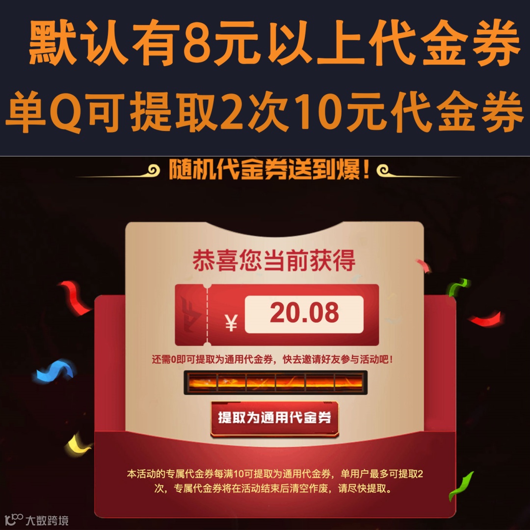 初始值8元以上代金券,做2元可提取10元代金券