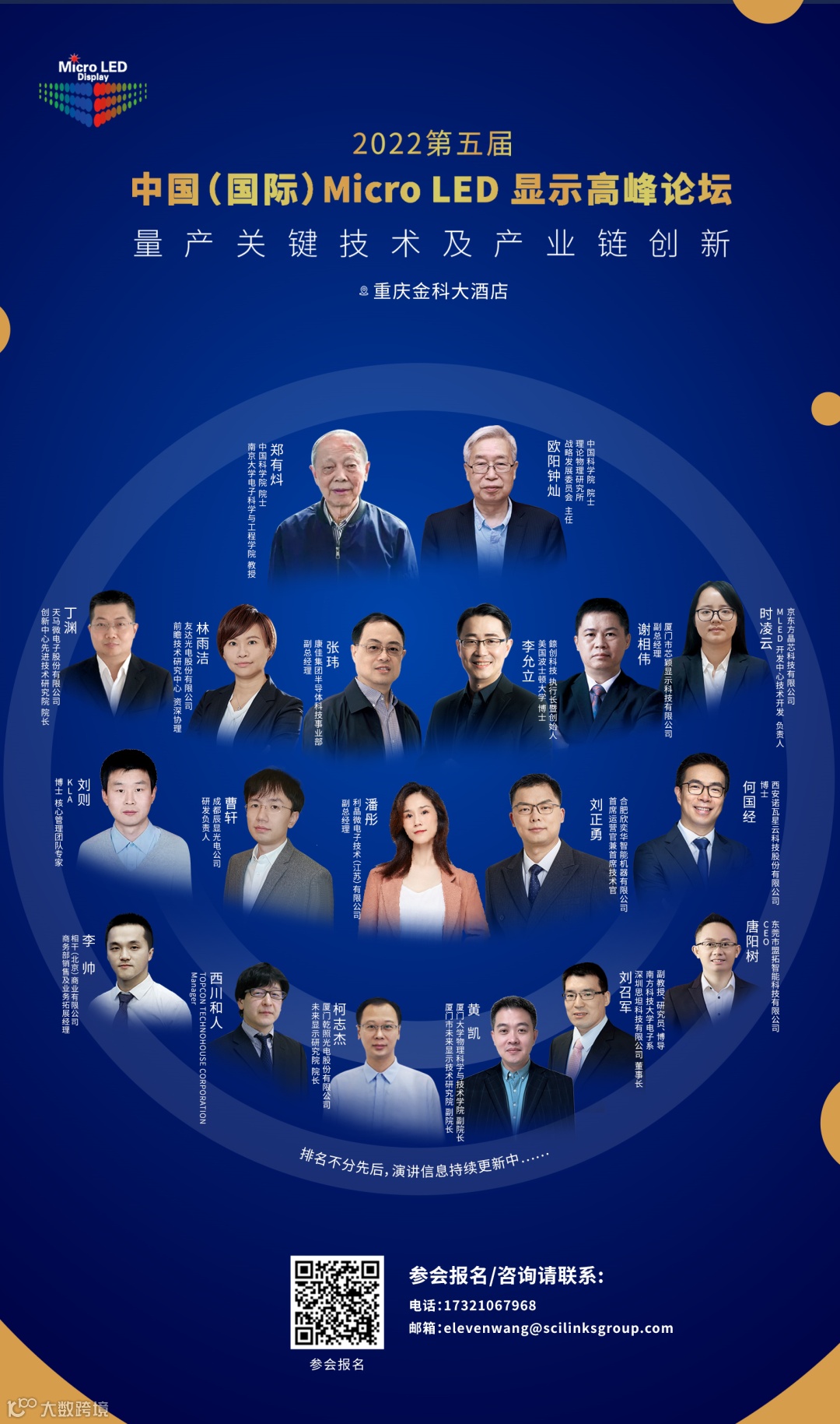 【重要会期通知】重要会期通知|2021-2022年第五届中国(国际)Micro LED显示高峰论坛8月23-25日与您相约重庆!