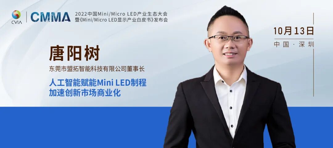 深圳安思智造科技有限公司 总经办 副总经理 谭玉良受邀出席2022中国Mini/Micro LED产业生态大会,并将带来《胶体检测技术在Mini LED生产的应用》主题演讲,敬请期待。