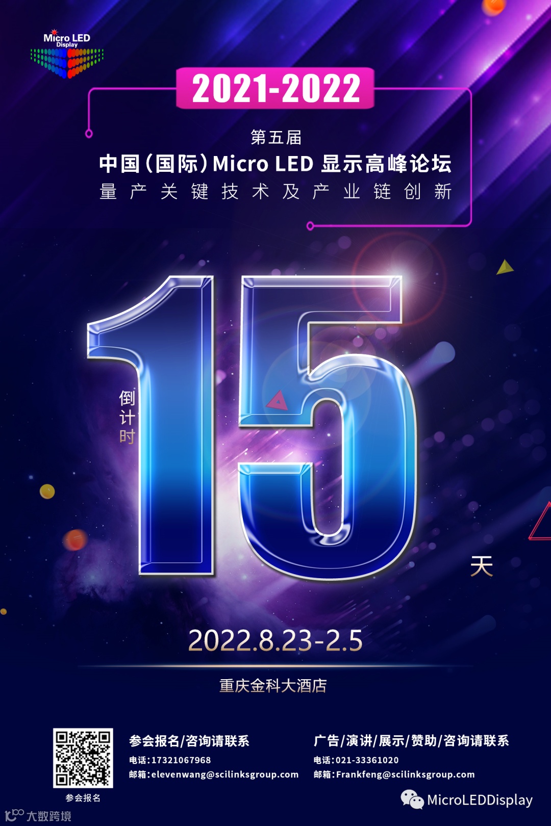 【重要会期通知】重要会期通知|2021-2022年第五届中国(国际)Micro LED显示高峰论坛8月23-25日与您相约重庆!