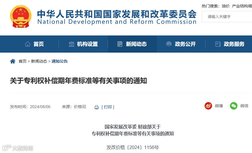 根据《中华人民共和国专利法》《中华人民共和国专利法实施细则》以及《财政部、国家发展改革委关于调整优化专利收费政策的通知》(财税〔2024〕23号)等有关规定,现就专利权补偿期年费标准等有关事项通知如下。