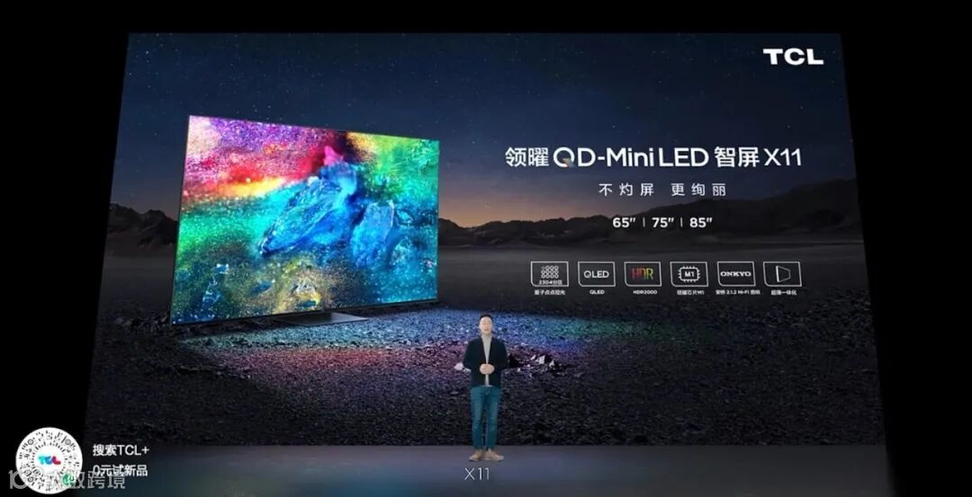 TCL QD-Mini LED智屏X11采用超薄机身,2.8mm极窄全面屏实现极致贴墙。尺寸分为65/75/85三个尺寸,现已全面开启预售。