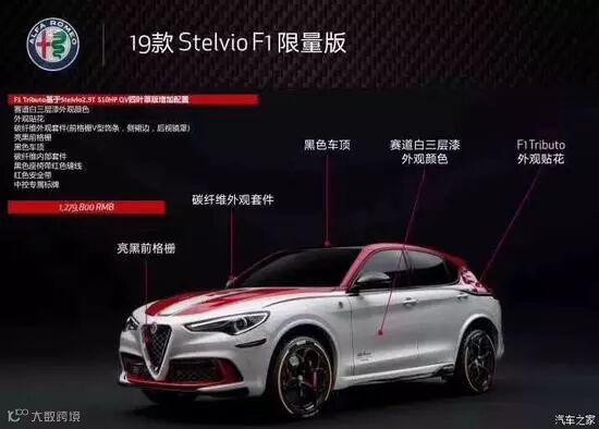 F1限量版的配置包括赛道白三层漆外观颜色、F1 Tributo外观贴花、碳纤维外观/内饰套件、亮黑前格栅、红色安全带和中控专属标牌等。
