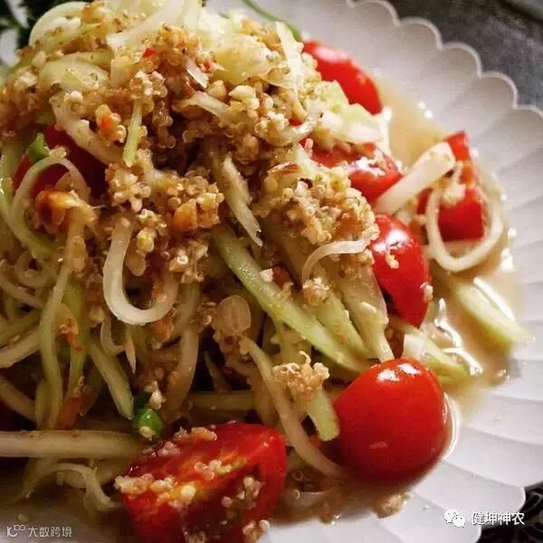 藜麦是个很“友善”的食材,不论在哪里都能融入当地饮食文化。泰国最可口的青木瓜沙拉,因为藜麦更有了“国际范儿”和营养!