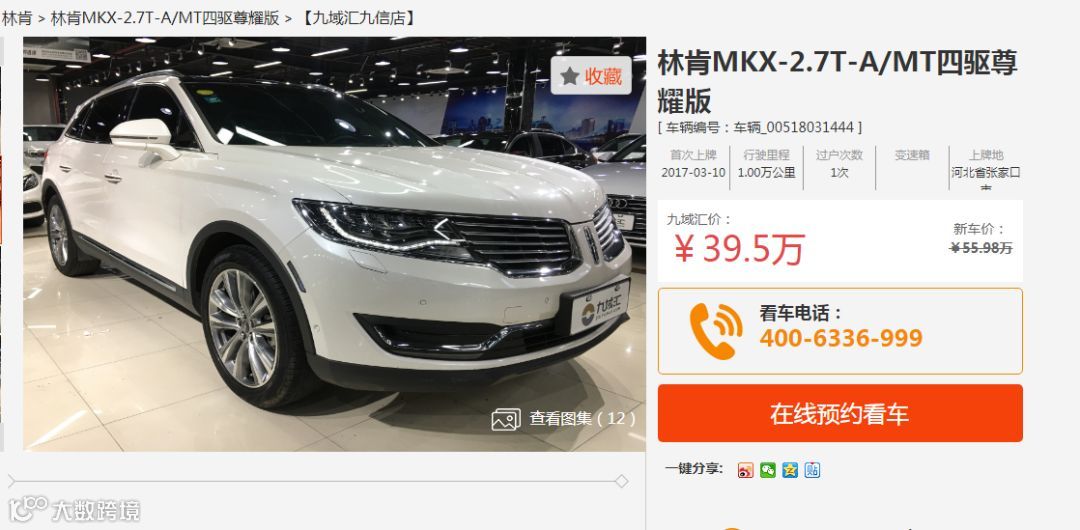林肯作为高端豪车品牌,在同级别的一些品牌中定价和配置相比性价比超高。而二手行驶里程1万公里林肯MKX在九域汇仅售39.5万比新车优惠17万。