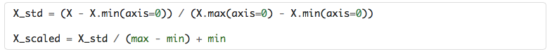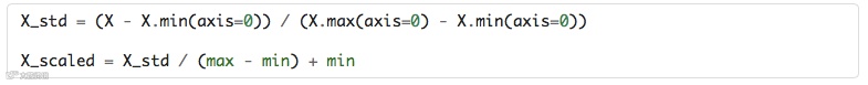 如果MinMaxScaler被给予一个明确的feature_range=(min,max),完整的公式是: