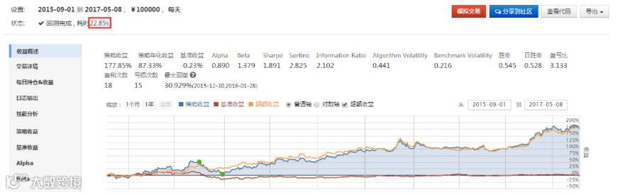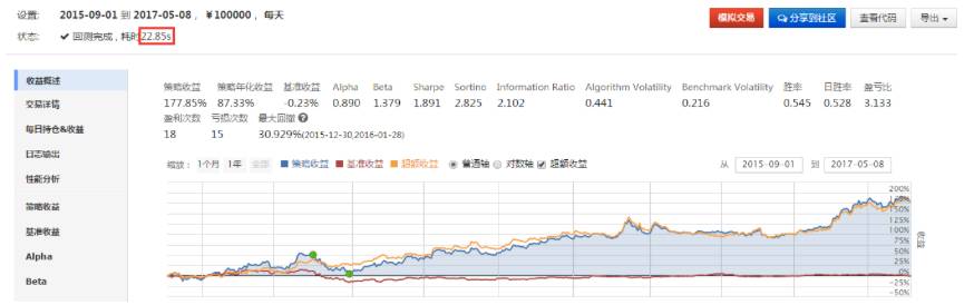 简单是指:如果回测的区间是一年半,如果电脑的wifi信号是五格,那么你与这个策略结果的距离还有23秒的对视。