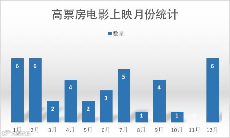 可以看出,中国电影市场票房真正开始高频出现高票房是在2012年,而上映的月份多集中于12~6月也就是上半年。猜测这与我国的假期安排有一定关系
