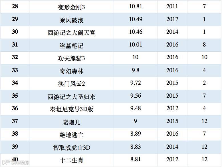 现在影视类股票池已选定,下一步要怎么办呢?想到电影和上映的时间有关,总结了一下中国近年来电影票房排名TOP40及上映时间如下表所示: