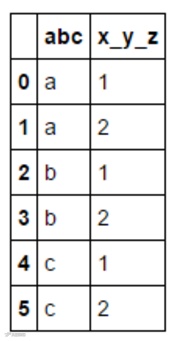 parameter_analysis.params_df 是包含了所有回测使用的参数的 DataFrame。其中,横行 index 是回测的编号,代表它是第几个被运行的回测,从 0 开始计数。竖列 columns 是之前输入的 param_names 的名字。df 中的内容是回测相对应的参数数值。举例来说,param_names = ['abc', 'x_y_z'],param_values=[['a','b','c'], [1,2]] 时,生成的 Data Frame 如下:.