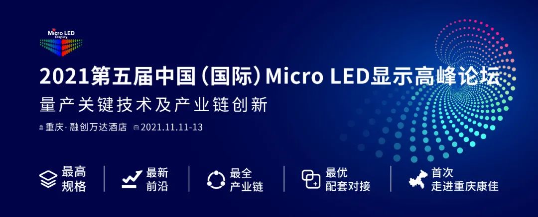 【最详细议程公布】2021第五届中国(国际)Micro LED显示高峰论坛邀您共话Micro LED技术量产关键技术及产业链创新!