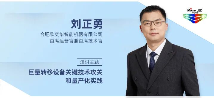 顺应国际Micro LED显示产业发展趋势,围绕“量产关键技术及产业链创新”主题展开的2021第五届中国(国际)Micro LED显示高峰论坛,定于2021年11月11日-13日在重庆融创万达酒店召开。合肥欣奕华智能机器有限公司首席运营官兼首席技术官刘正勇将发表主题报告:巨量转移设备关键技术攻关和量产化实践。