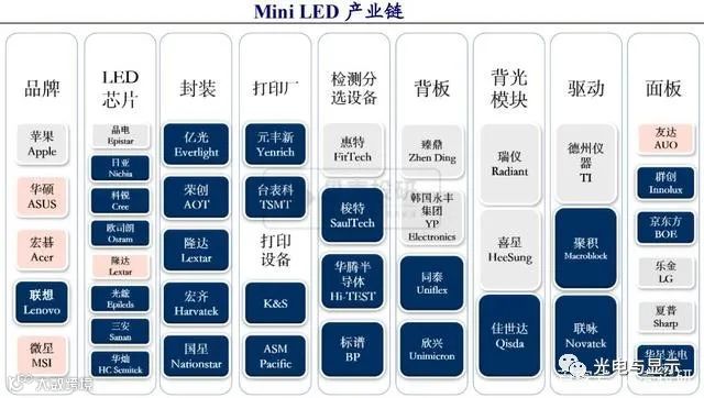 作为全球最强的两个消费电子品牌,苹果和三星有非常强势的风向标作用,苹果和三星公司的加入,预计会带动产业风潮,加速Mini LED产业链标准的形成和快速成熟。