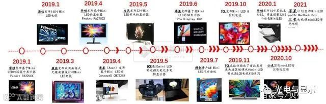 2019年以来,苹果、小米、TCL、海信、华硕、群创、友达、京东方等巨头纷纷推出Mini LED背光或类似技术的电视、显示器、VR和车载显示等终端产品,Mini LED迎来规模商业化元年,随着产业链的成熟、成本的下降,2021年Mini LED背光有望迎来快速渗透。
