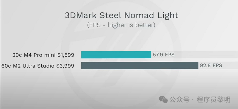 有人可能会认为,Mac Studio M2 Ultra 配备了 60 核 GPU,性能肯定比 Mac Mini M4 Pro 强大。但实际测试中,我发现两者在游戏和图形密集型任务中的差距并没有想象中那么大。