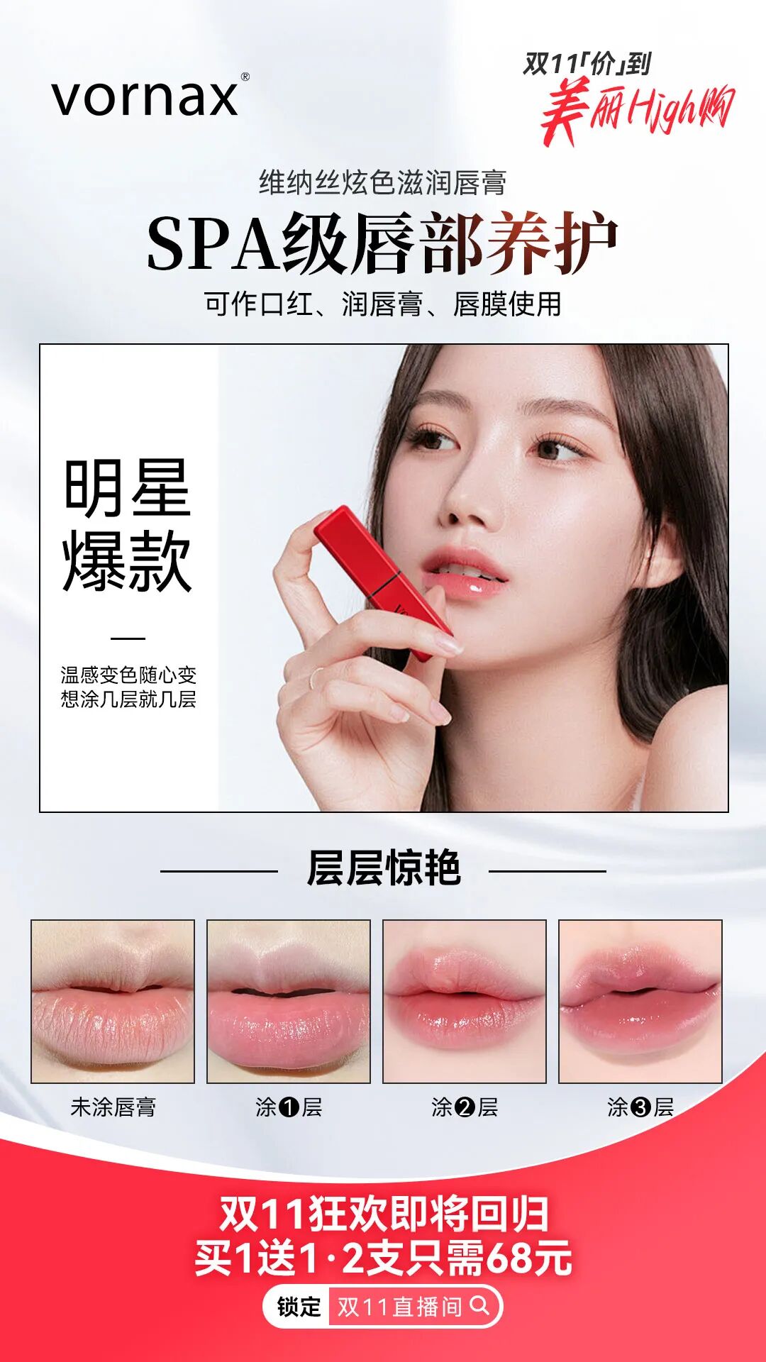 这次双十一直接买1送1,到手2支!算下来一支只要30+,这个价格=口红+润唇膏+唇膜。无论是自用还是送闺蜜,都是超值选择,这次可千万别再错过啦!