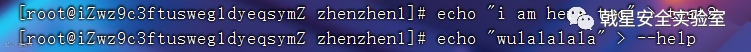 可以看到我们并不能抓取名为--help的文件,这里并不难理解,只是shell先去解析了cat --help调出了帮助文档,而没有选择去抓取名为--help文件里面的内容,这种现象被称为Wildcard wildness。