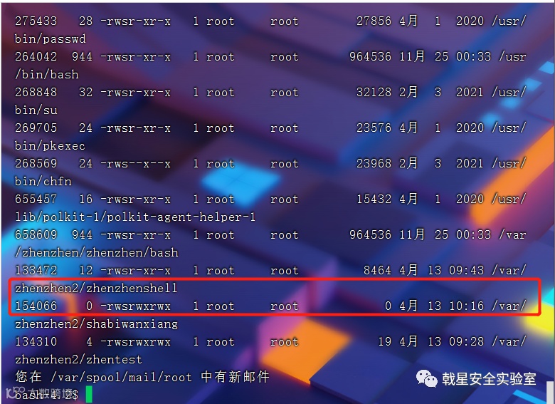 根据上面的描述,我们很明显需要知道哪些定时任务启用了root权限执行,并且能够让攻击者(低权限账户)进行编辑,当用户权限足够时,我们可以通过在网上搜集一些搜索脚本来寻找其他用户的定时任务。