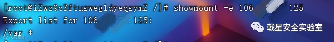 当我们以低权限用户对/etc/exports文件进行cat的时候,我们可以清楚的看到管理员对NFS的配置,这时候我们在另外一台机器A上利用showmonut远程访问到NFS服务器